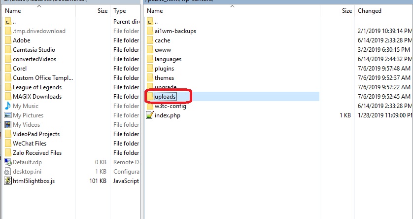 1. Up load toàn bộ thư mục ảnh “uploads” từ website cũ ghi đè vào website mới